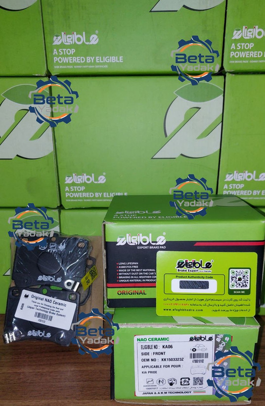 لنت ترمز جلو دیسکی الیجیبل نائوسرامیک کد KA06 پراید و پراید وانت ( دست 4 عددی )
