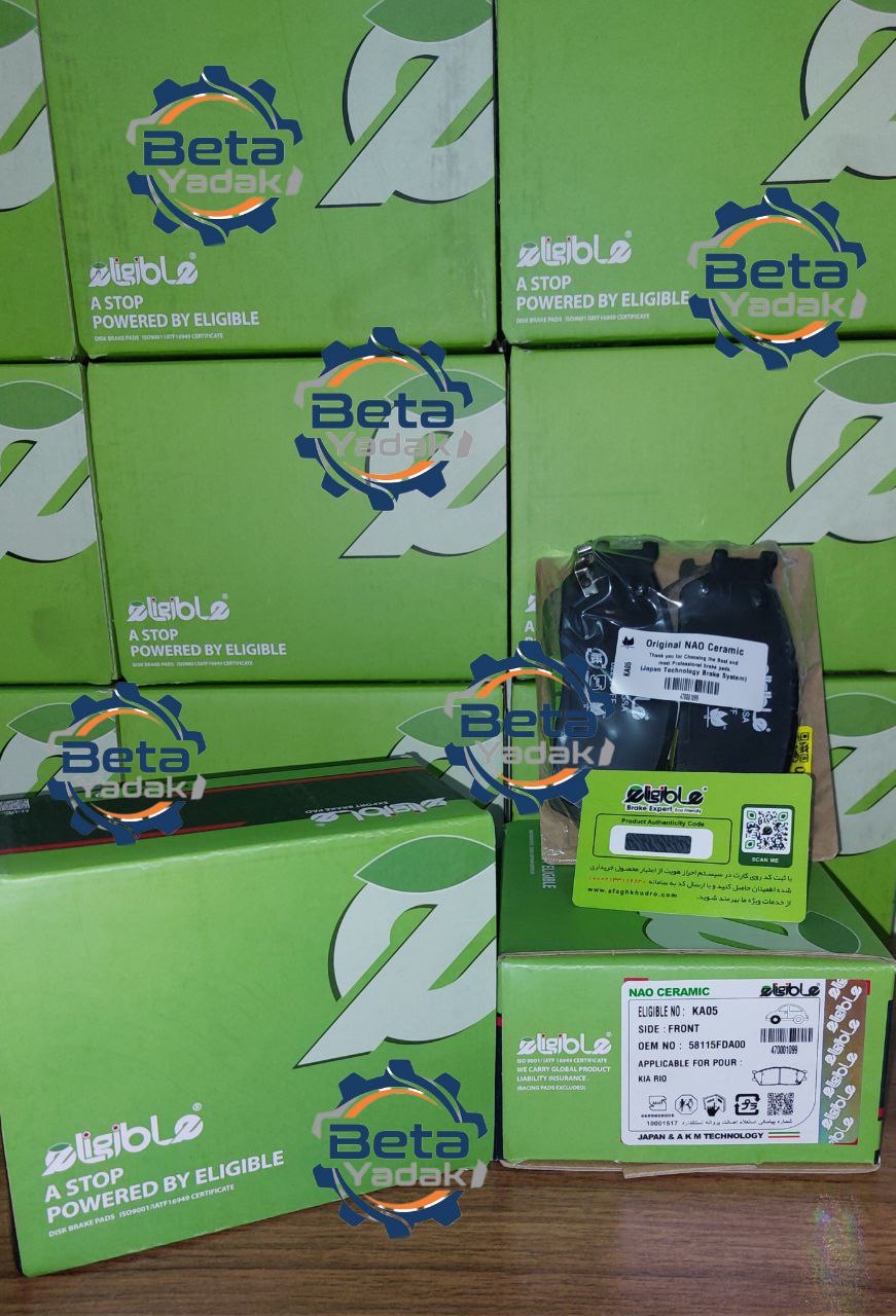 لنت ترمز جلو دیسکی الیجیبل نائوسرامیک کد NO: KA05 ریو و تیبا2 جدید مدل 91 به بالا دنده ، ساینا،کوئیک، سهند